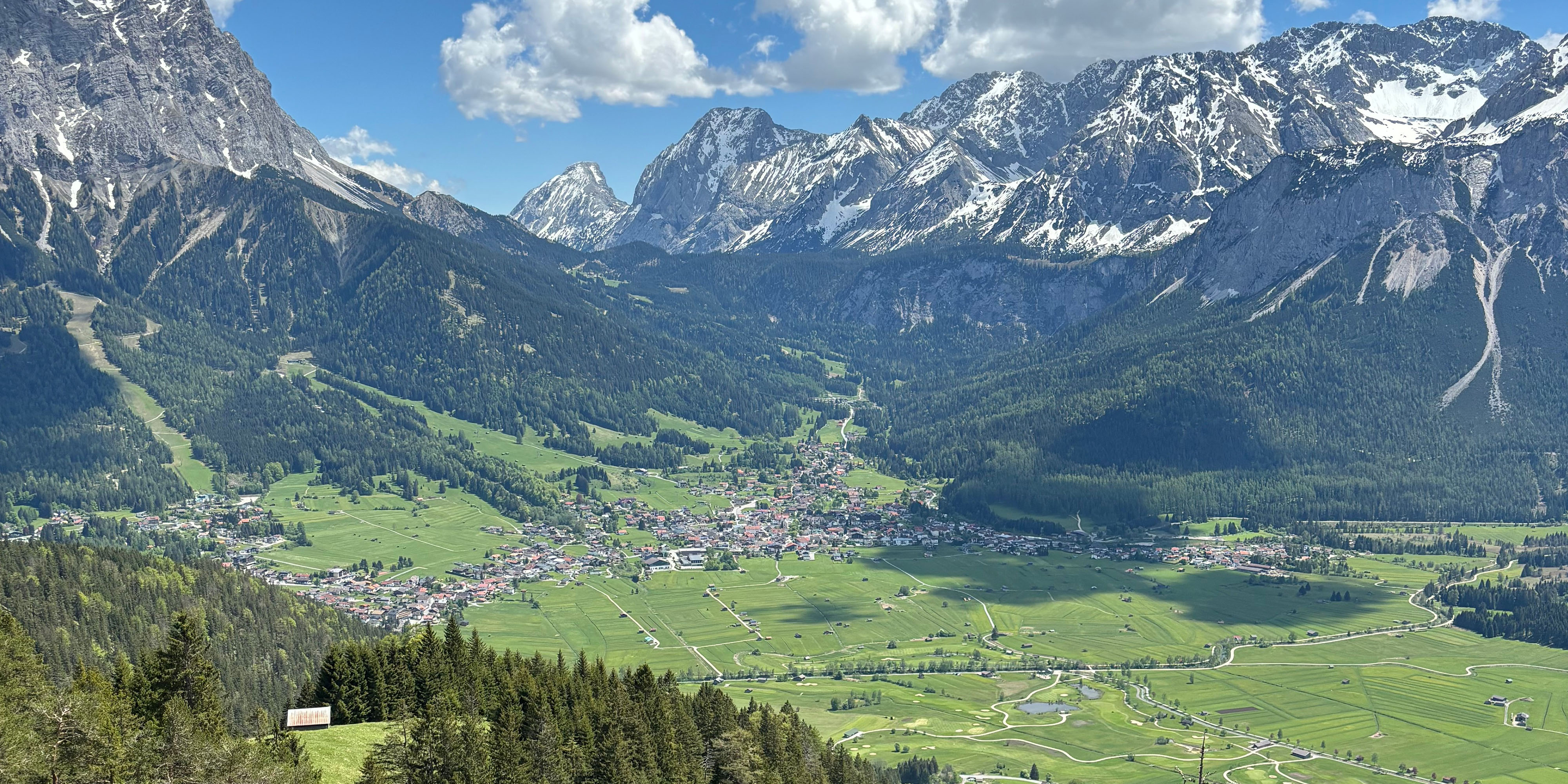 Lage: Bichlbach liegt auf einer Höhe von ca. 1.079 Metern in den Tiroler Alpen, nahe der deutschen Grenze und der berühmten Zugspitze, dem höchsten Berg Deutschlands.